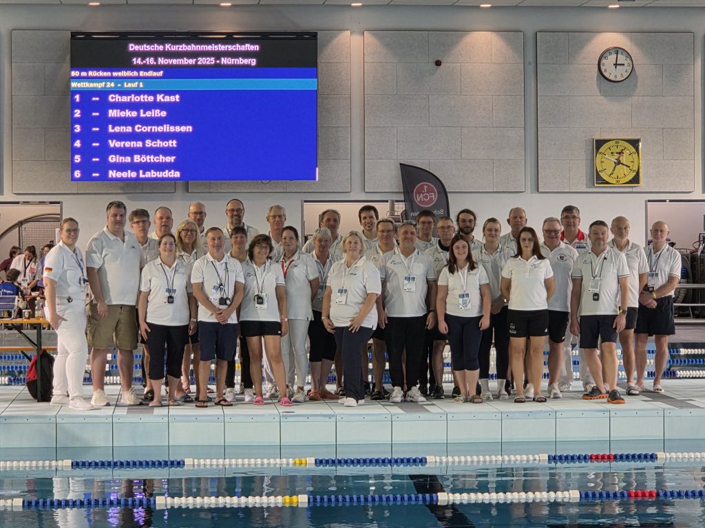 Für die Deutschen Kurzbahnmeisterschaften 2025 im Paraschwimmen durften wir aus dem Bezirk das Kampfgericht stellen. Danke für euren zahlreichen Einsatz a Beckenrand. Ihr habt echt einen super Job gemacht. Ich freue mich jedesmal, mit euch am Beckenrand zu stehen. Danke für euren Einsatz.